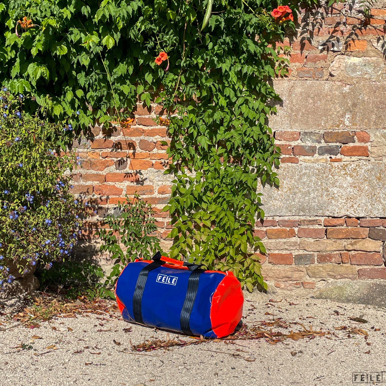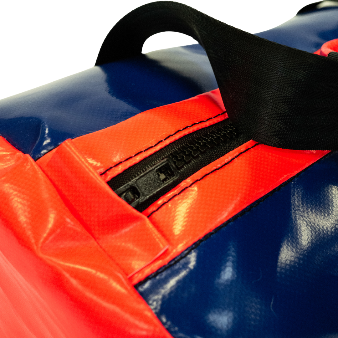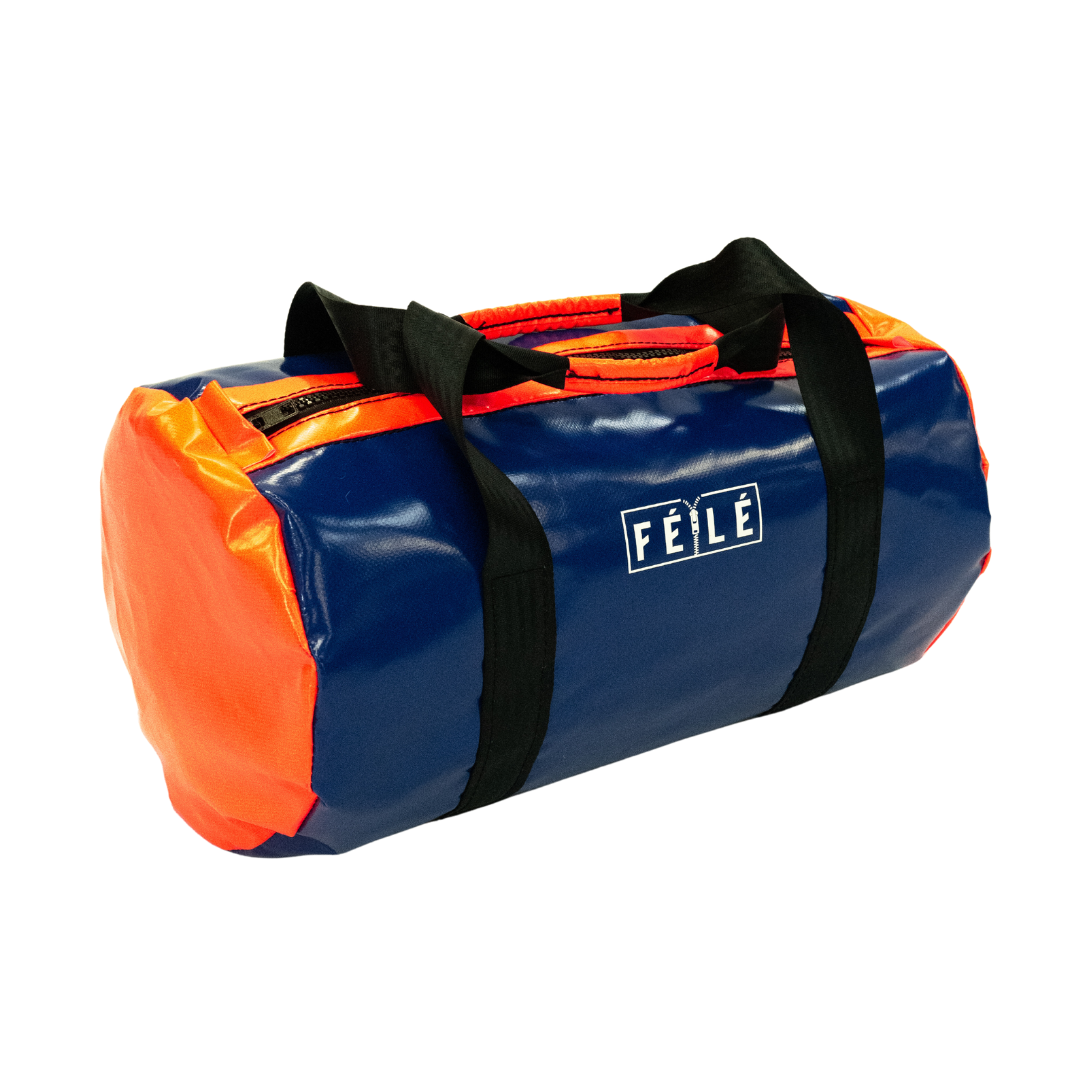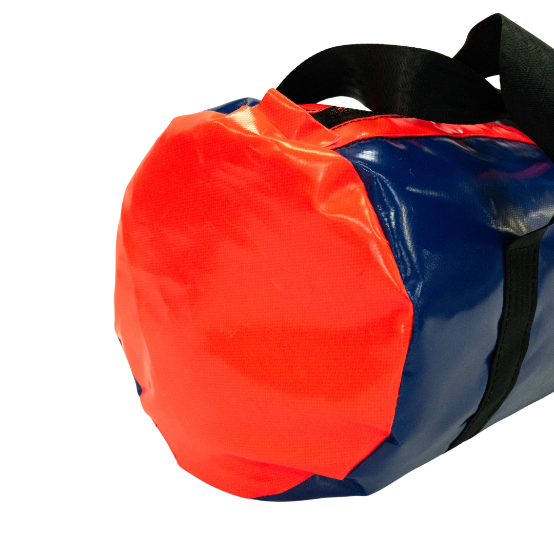 Sac polochon sportswear en bâche de camion - Bleu foncé & Orange fluo