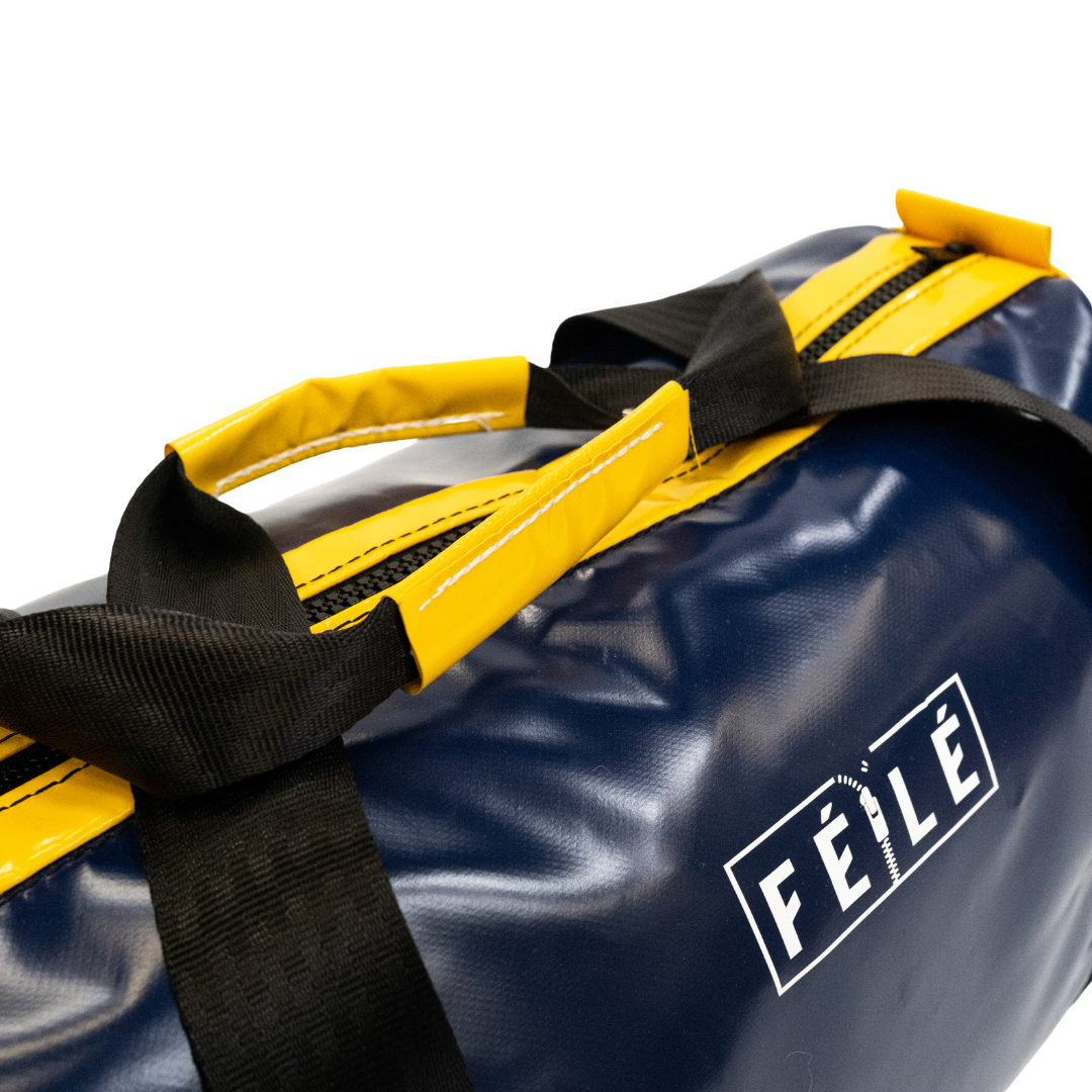 Sac polochon sportswear en bâche de camion - Bleu navy & Jaune