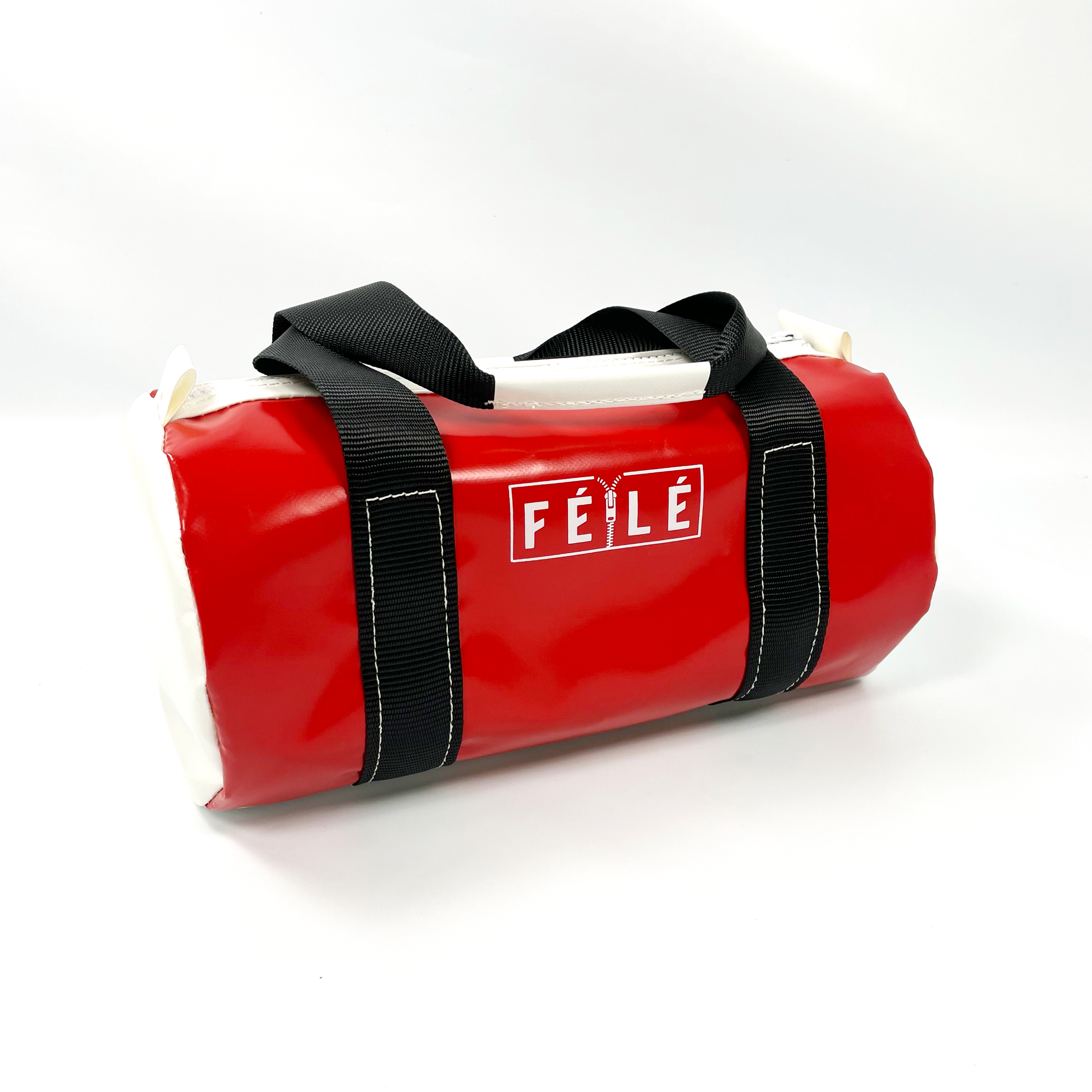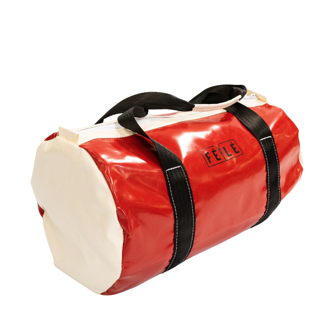 Sac polochon sportswear en bâche de camion - Rouge & Beige